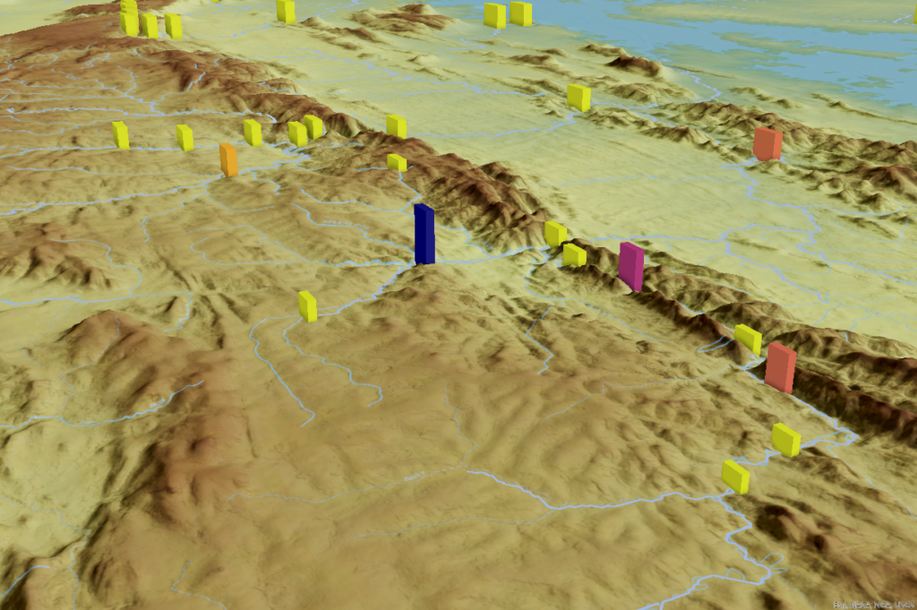 One of the most valuable aspects of this approach is moving window analysis, which at a basic level, enables complex calculations at regular intervals along drainage lines. Using nodal scoring techniques, sites are objectively scored based on water flow, environmental risk, and accessibility.